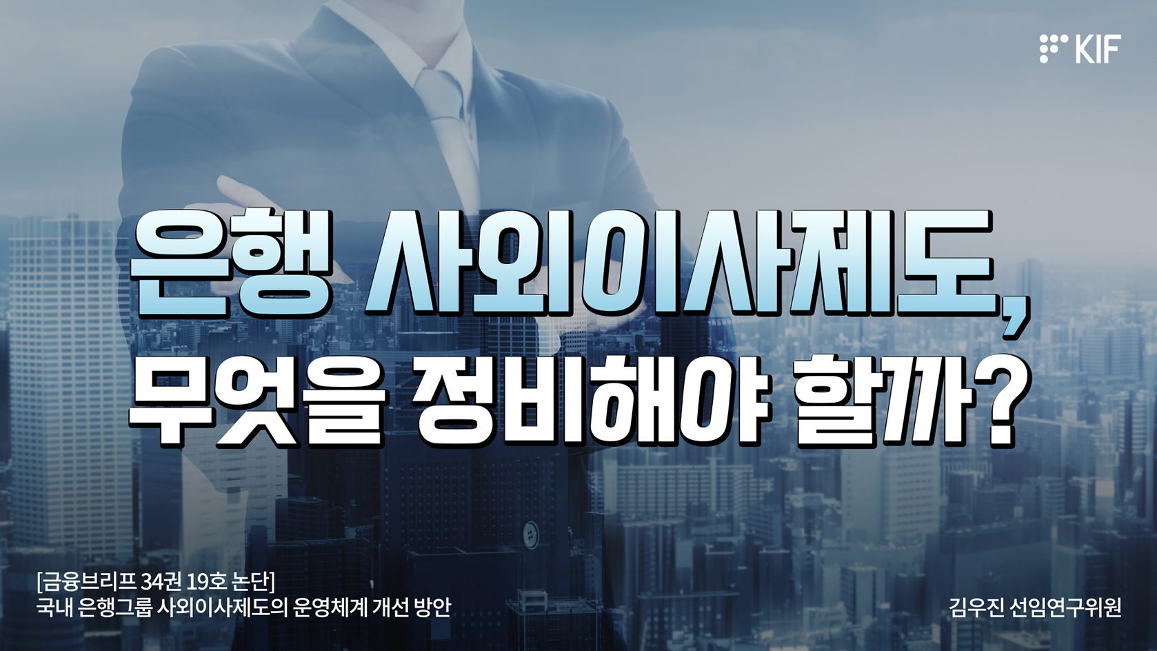 최근 정부가 밸류업 프로그램, 상법 개정을 추진하는 상황에서 본 고는 국내 은행그룹 사외이사제도의 운영체계를 어떤 방식으로 개선할지에 대해 논의하고자 한다.